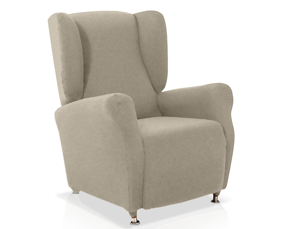 Está confeccionada con tejido multielástico, el cual cede tanto a lo ancho como a lo alto, para un efecto tapizado superior. Se compone de una sola pieza que cubre por completo el sillón orejero para una protección total.