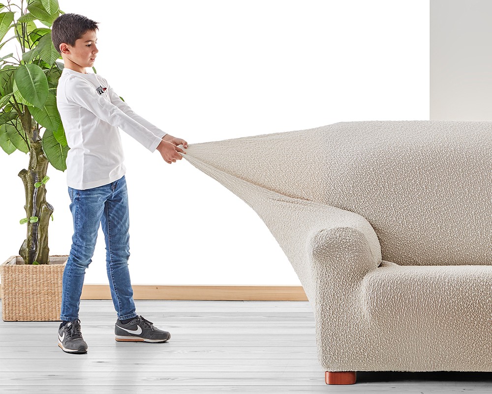 Le tissu multi-élastique est une innovation textile qui permet au tissu de céder à la fois en hauteur et en largeur pour un ajustement total. Il recouvre complètement le canapé d'angle grâce à son l'élasticité, la protection est totale.