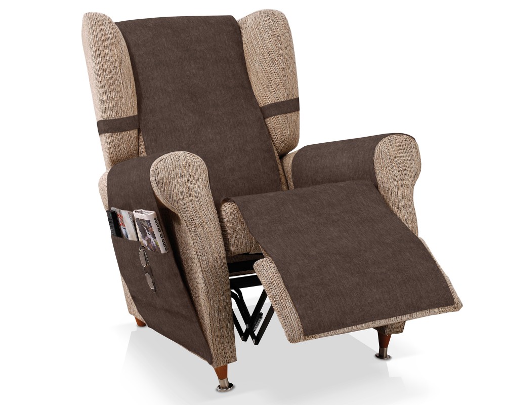 Confeccionado con tejido no elástico, de una sola pieza, incluye bolsillos laterales para que puedas guardar tus gafas o el mando a distancia. Sirve tanto para sillones relax con orejas como sin orejas.