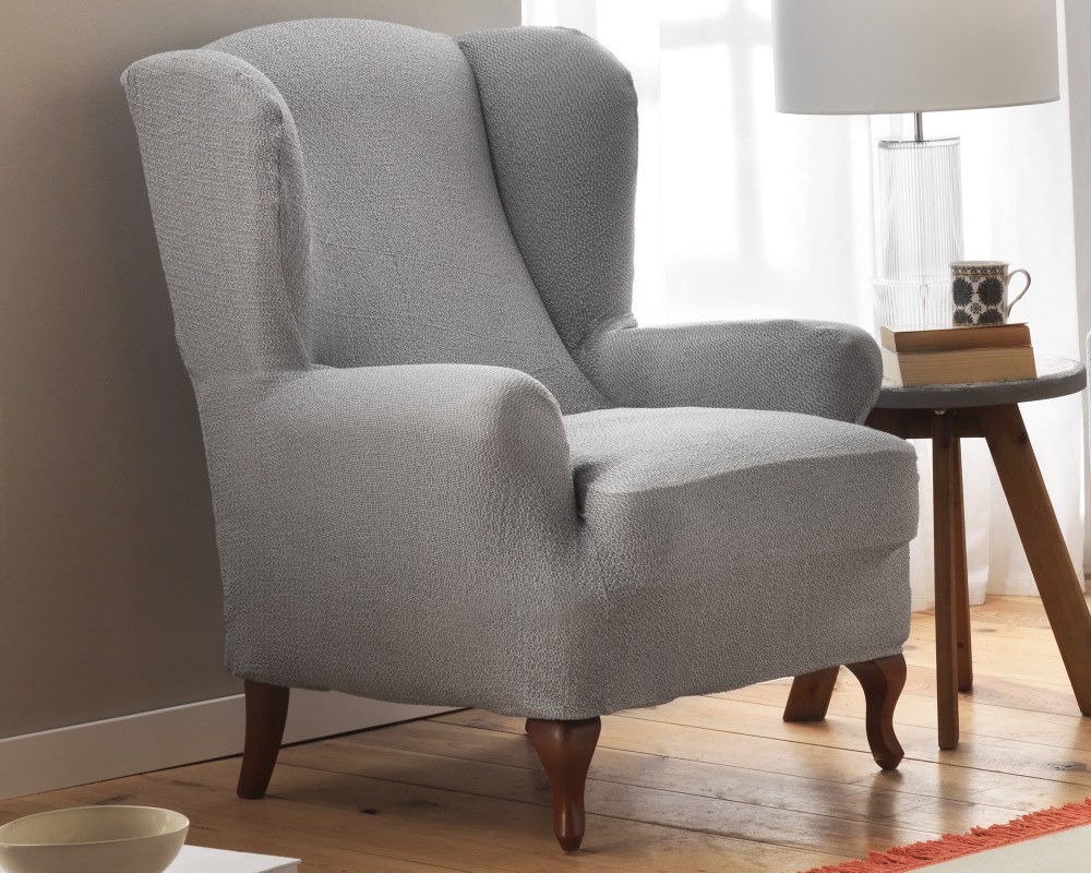 Está confeccionada con tejido multielástico, el cual cede tanto a lo ancho como a lo alto, para un efecto tapizado superior. Se compone de una sola pieza que cubre por completo el sillón orejero para una protección total.